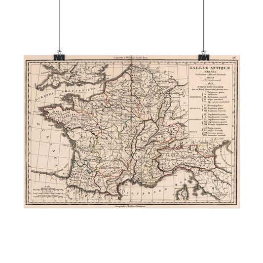 Antique Map of Ancient Gaul (1825) — Félix Delamarche, Galliae Antiquae, Paris