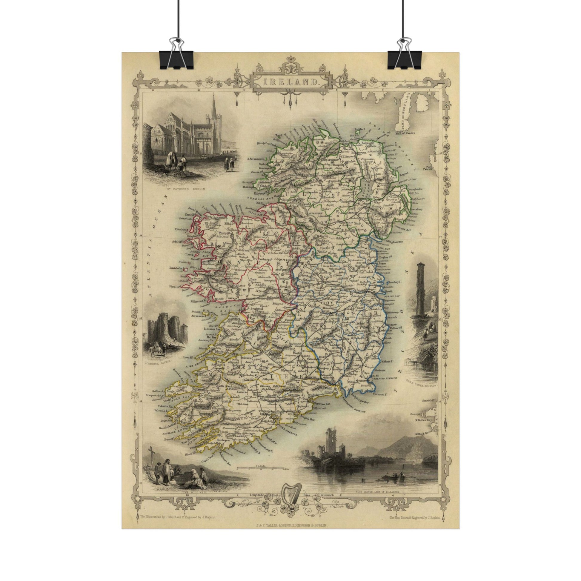 Antique Map of Ireland (1851) — Illustrated Atlas by J. & F. Tallis and R. Montgomery Martin