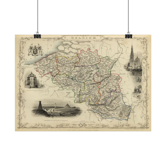 Antique Map of Belgium (1851) — Illustrated Atlas by J. & F. Tallis and R. Montgomery Martin