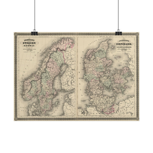 Antique Map of Scandinavia (1886) — A.J. Johnson, Sweden, Norway & Denmark