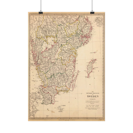 Antique Map of Southern Sweden (1833) — SDUK, Society for the Diffusion of Useful Knowledge, London