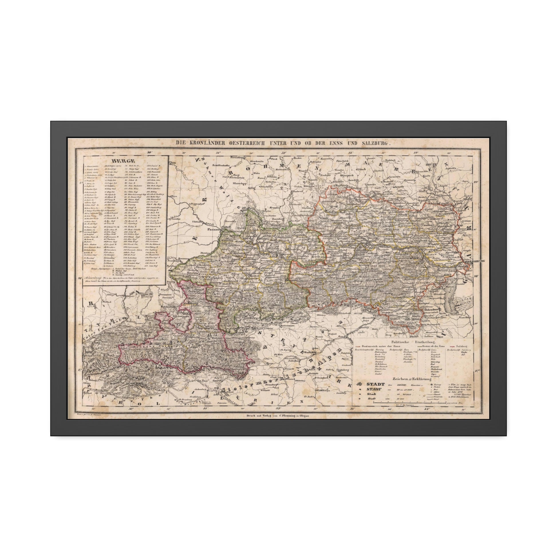 Antique Map of Austria (1855) — (Framed Print) Crown Lands of the Habsburg Empire by Carl Flemming