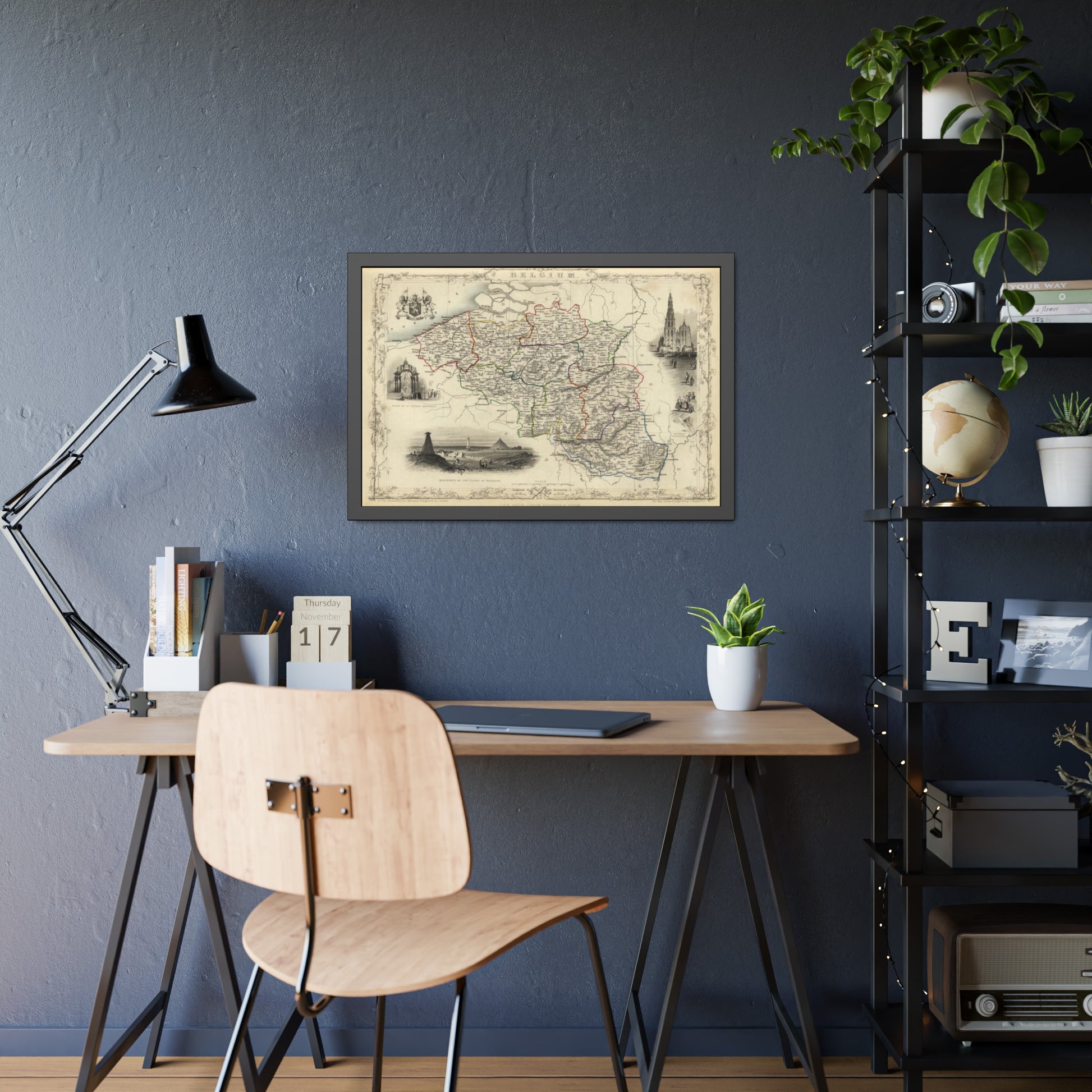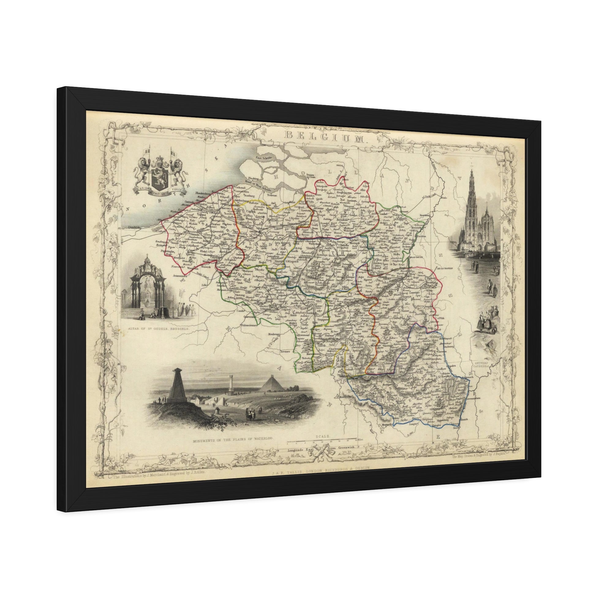 Antique Map of Belgium (1851) — (Framed Print) Illustrated Atlas by J. & F. Tallis and R. Montgomery Martin