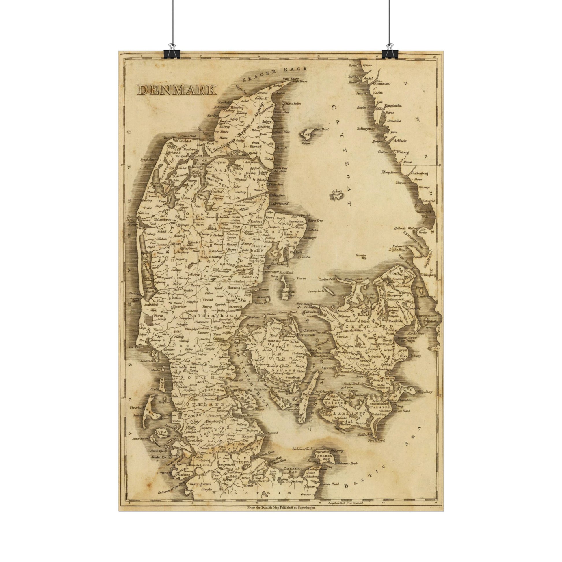 It presents the Danish kingdom with remarkable precision, showing settlements, political divisions, and waterways in fine copperplate detail.