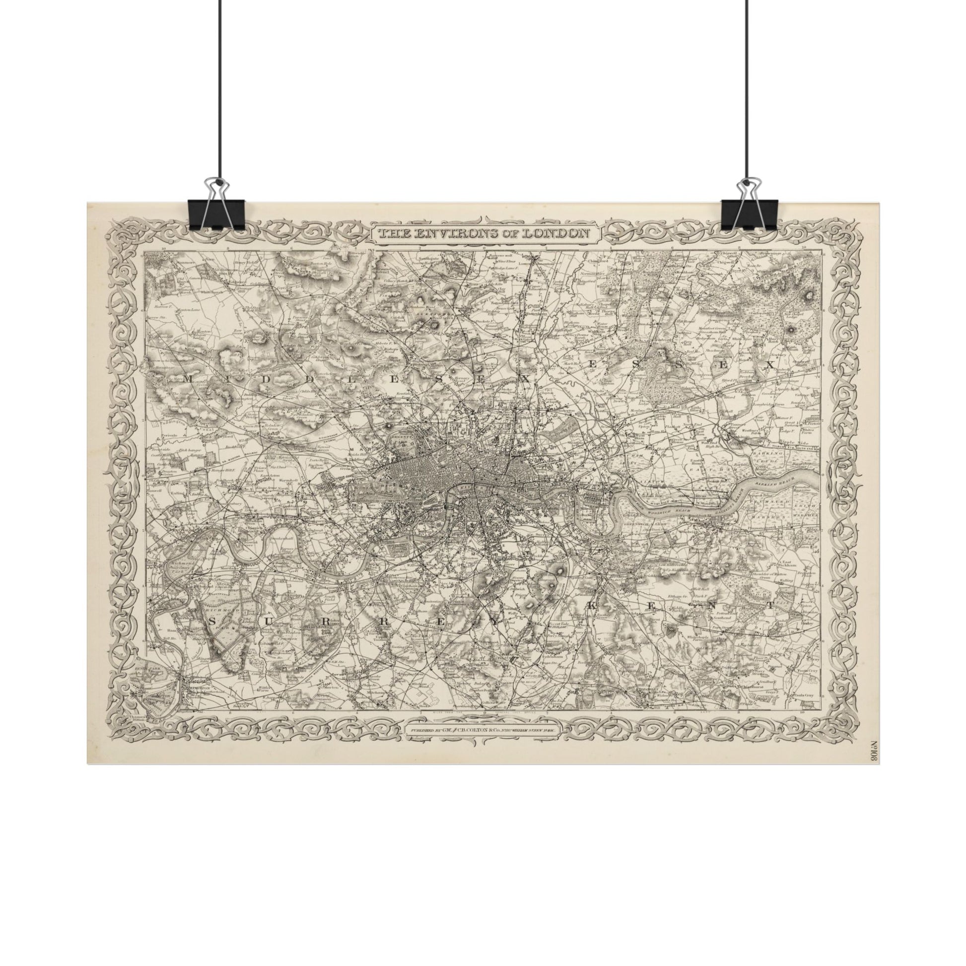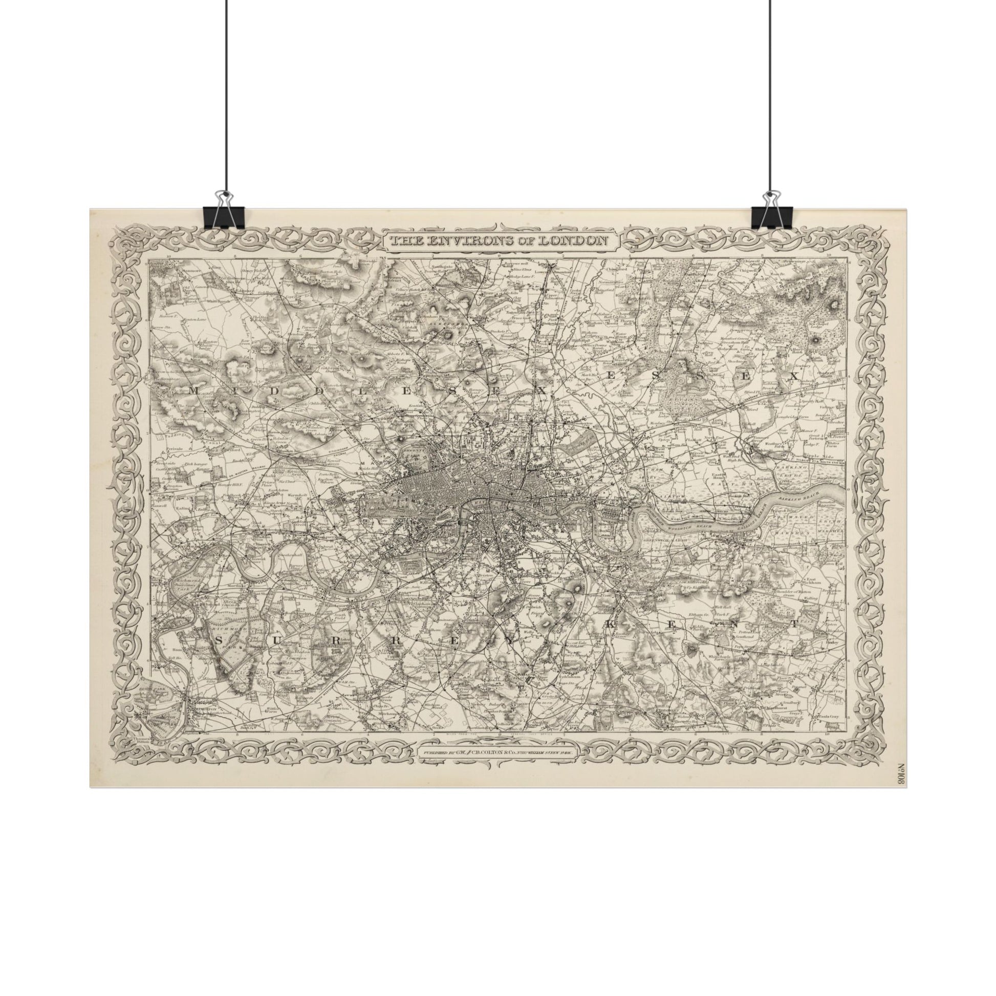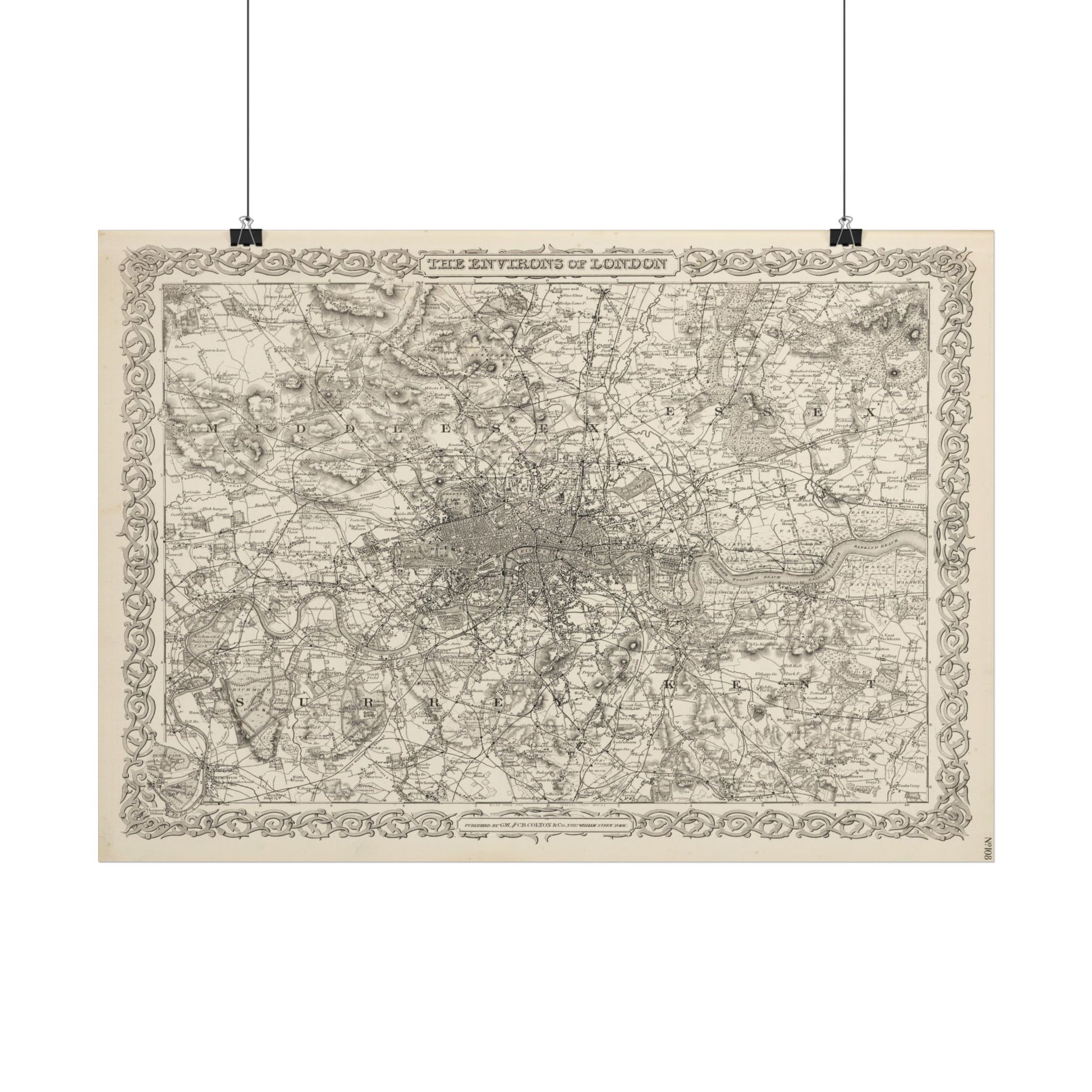 Antique Map of London (1886) — G.W. Colton, The Environs of London, New York Edition