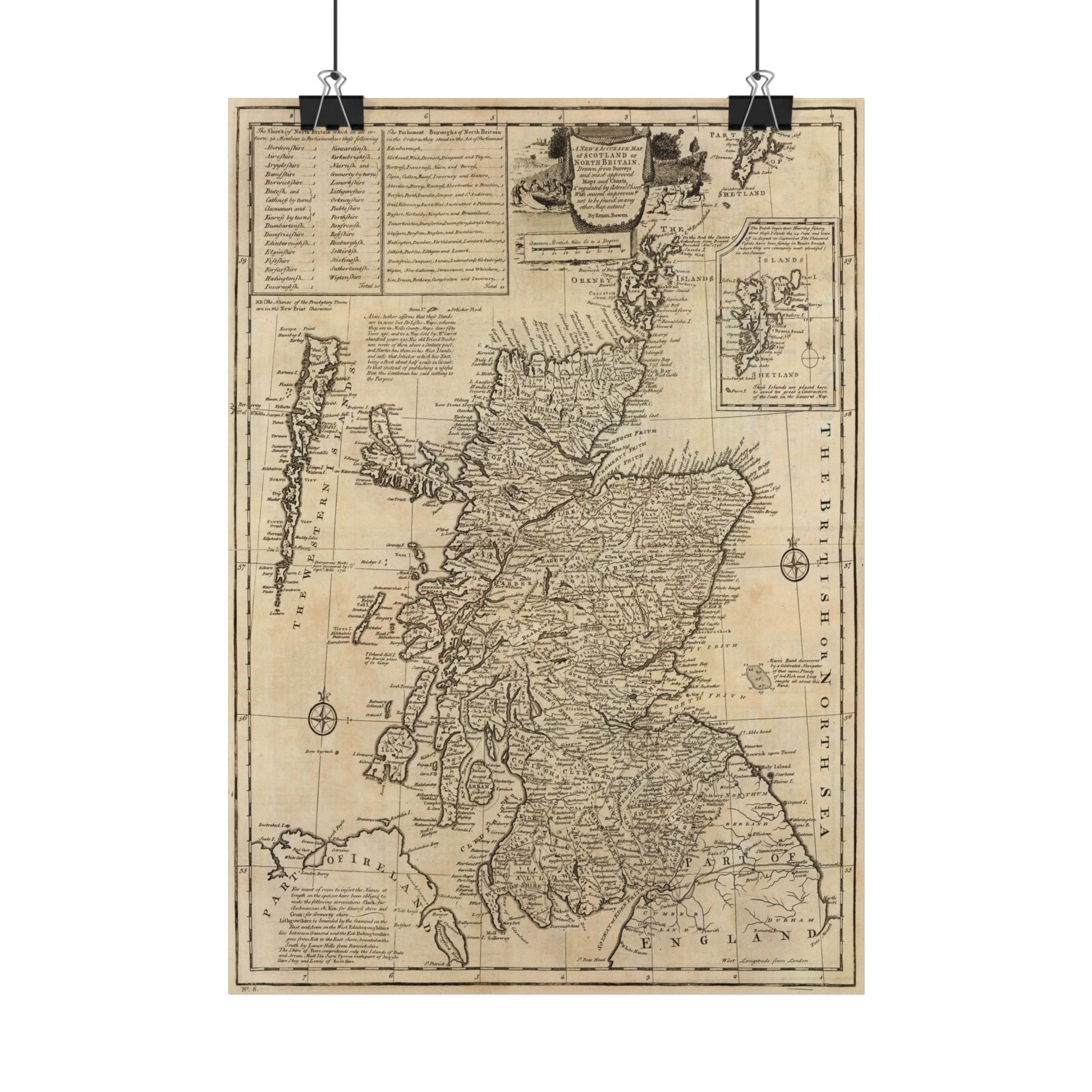 Restored and printed on archival paper, this piece offers a striking portrayal of 18th-century Scotland, when cartographers first captured its rugged landscapes with both accuracy and grandeur.
