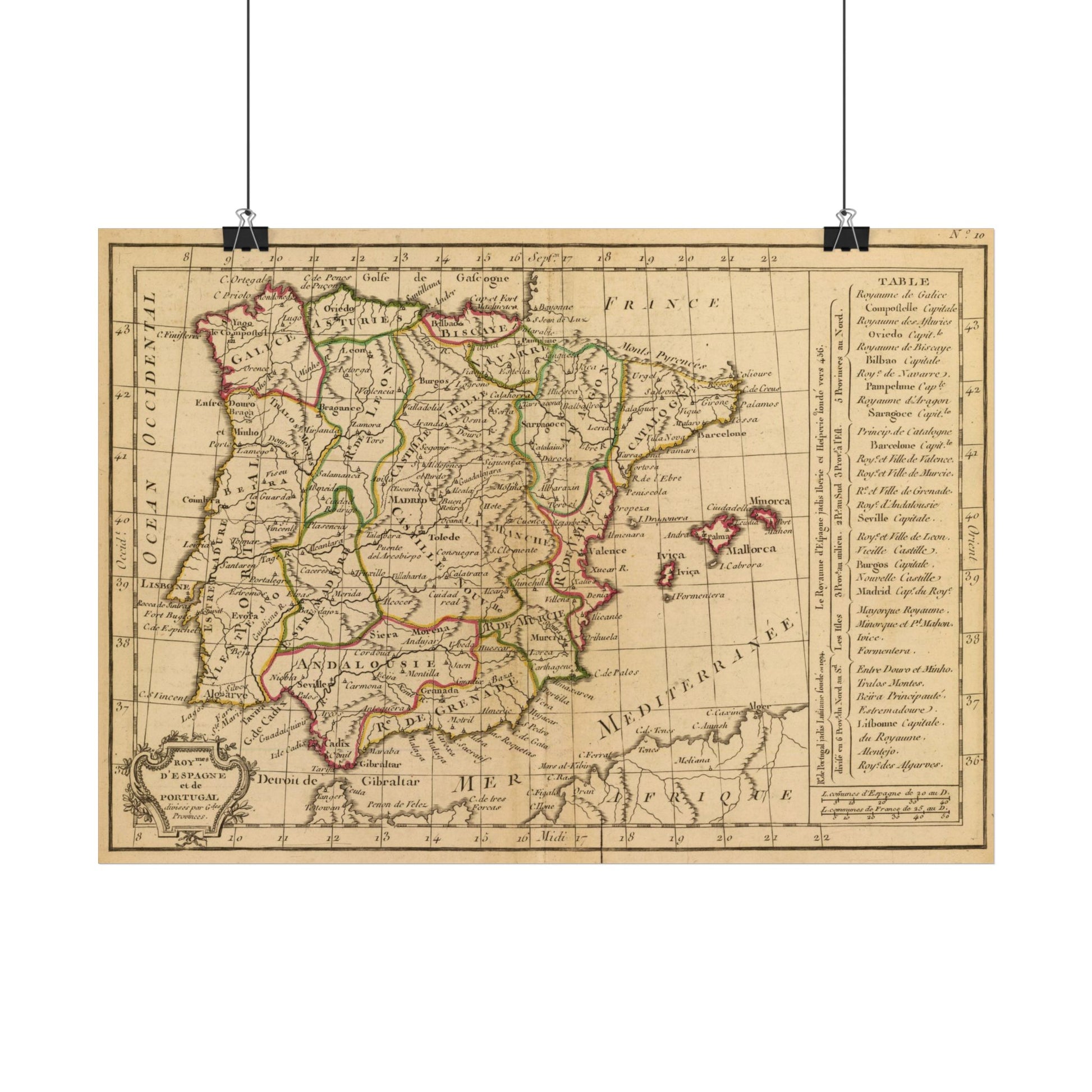 Engraved and published in Paris by Charles François Delamarche around 1800, this charming small-format map of Spain and Portugal divides the Iberian Peninsula into its historic provinces, elegantly outlined by hand.
