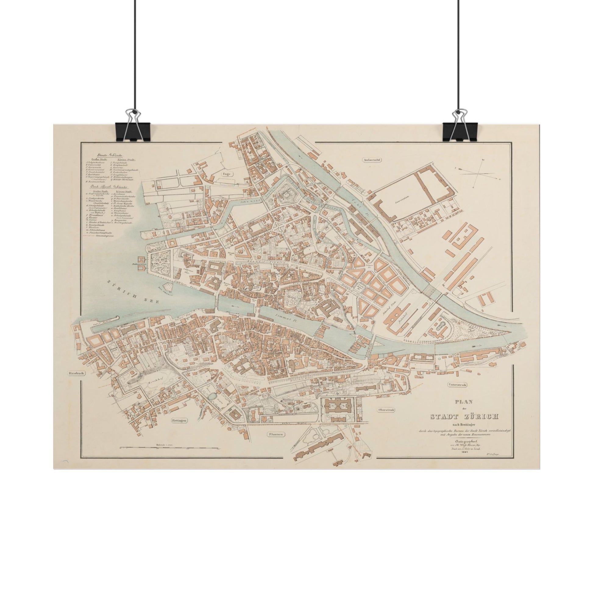 Antique Map of Zürich (1867) — Weiss-Keiser & Breitinger, Plan der Stadt Zürich